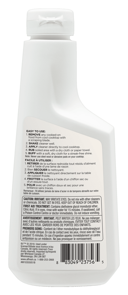 A: If you get affresh® Cooktop Cleaner in your eye, rinse with water for 15 minutes. If irritation persists, seek medical treatment.